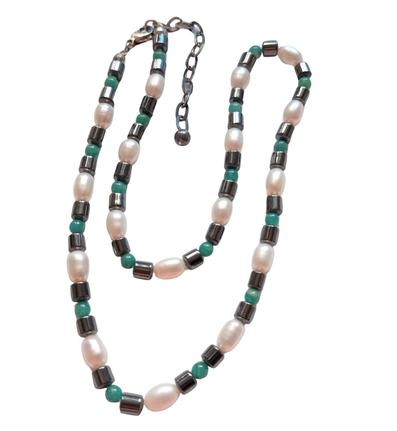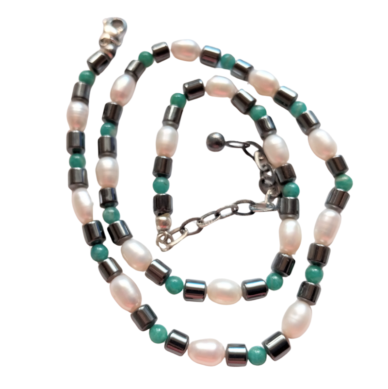 Edelsteinkette Hämatit - Amazonit - Perlen