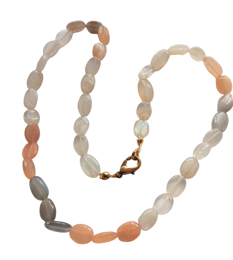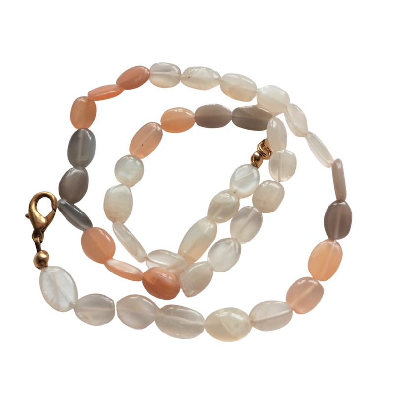 Erhellen Sie Ihren Look mit dieser Edelstein Mondsteinkette Oliven! Eine edle 42 cm lange Kette mit funkelnden 8-10 mm großen Oliven-förmigen Mondsteinen, perfekt für einen stilvollen und eleganten Auftritt. Schmücken Sie sich mit ihrer mystischen Schönheit.