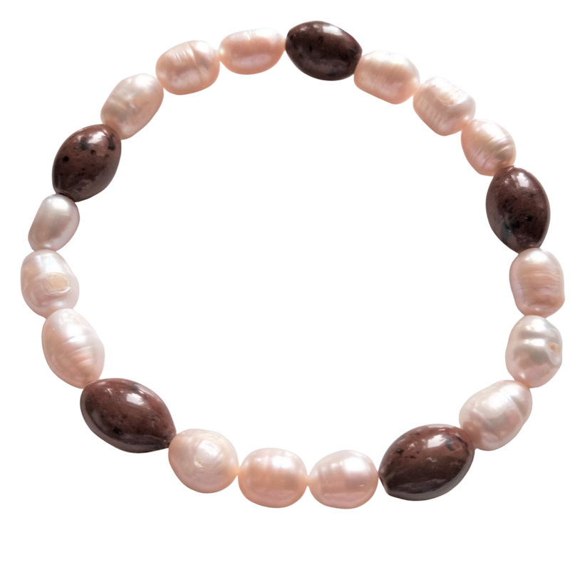 Armband Süsswasserperlen mit Mahagoni Obsidian Oliven