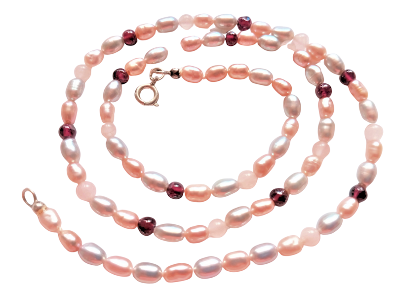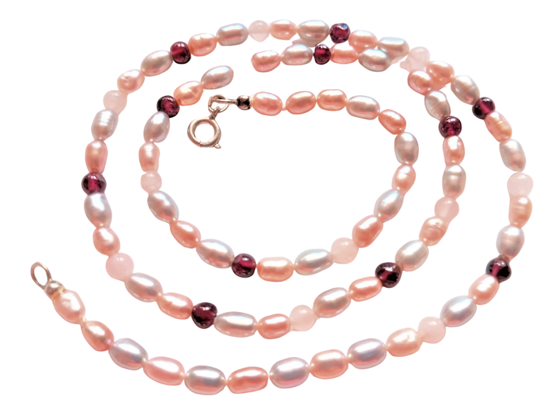 UNIKAT / Perlenkette mit Rosenquarz und Granat