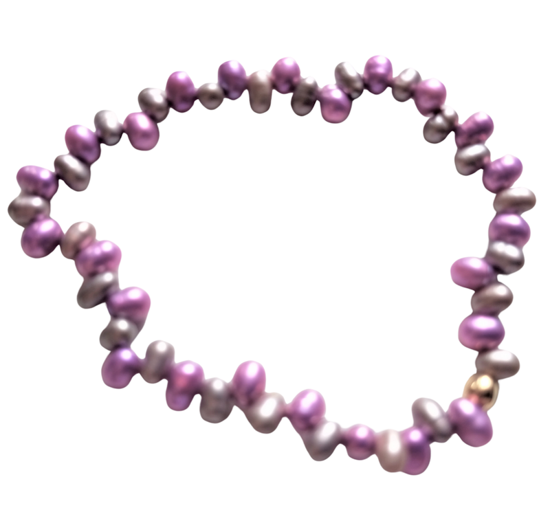 Dieses flexible Perlenarmband besteht aus grauen und pinken Süsswasserperlen. Durch seine Dehnbarkeit passt es an jedes Handgelenk. Entworfen und gefertigt in meiner eigenen Werkstatt, vereint dieses Armband Eleganz und Handwerkskunst perfekt miteinander.