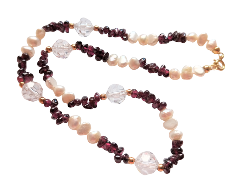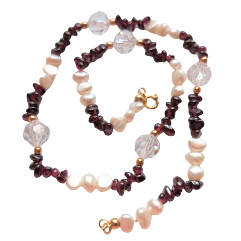 UNIKAT Edelsteinkette Granat - Perlen - Kristalle